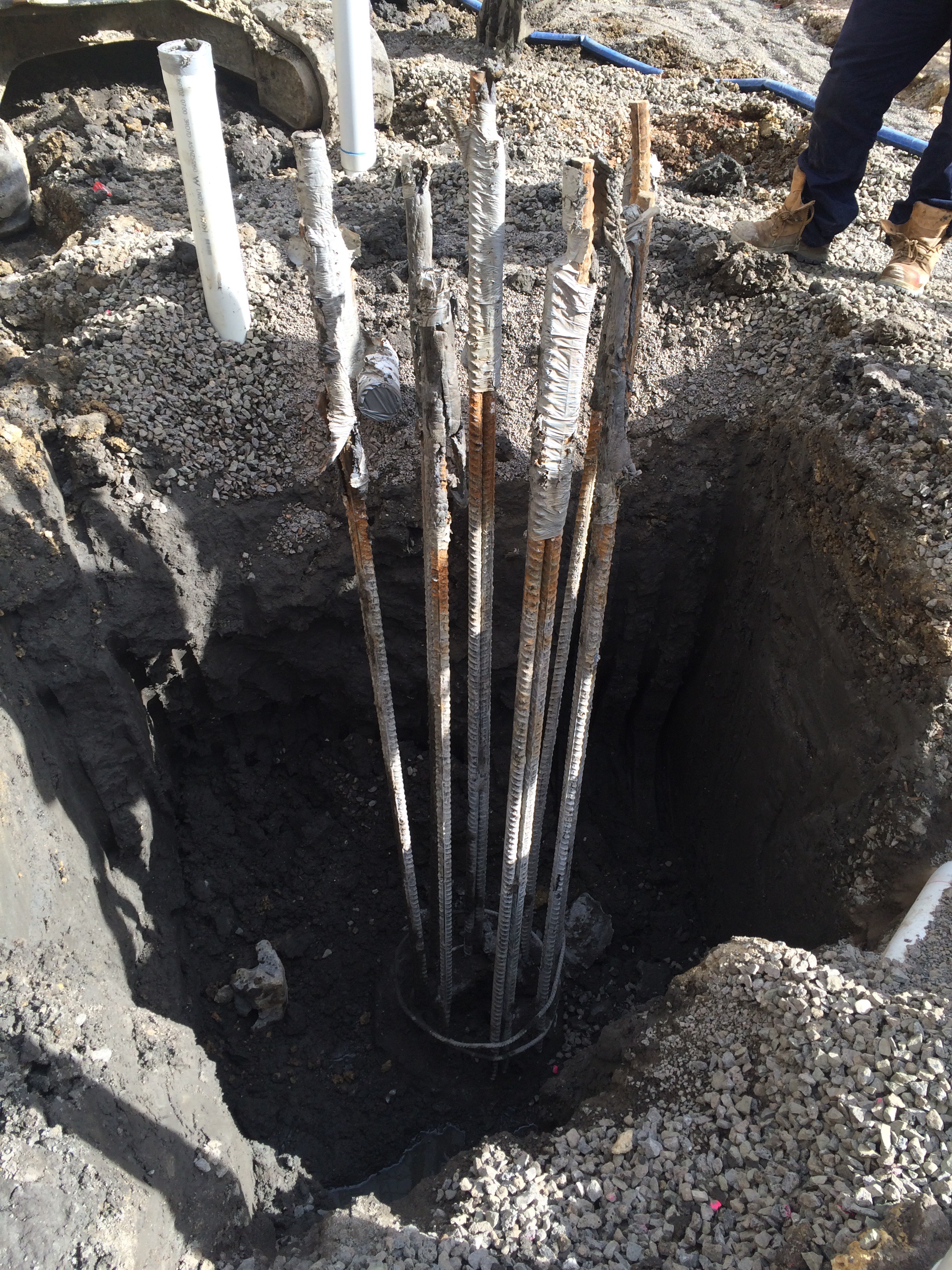 The piling designer was contacted and assured everyone that the rock socket length could still be achieved by increasing the depth of the pile, but not the length of the cage, so the bottom 1.25m would have no structural steel. (Revision – due to additional length in the cages the actual length without steel is only 600mm). This pile will be recorded as a non-conformity by the piling sub-contractor and I will advise that further testing be carried out on this pile.