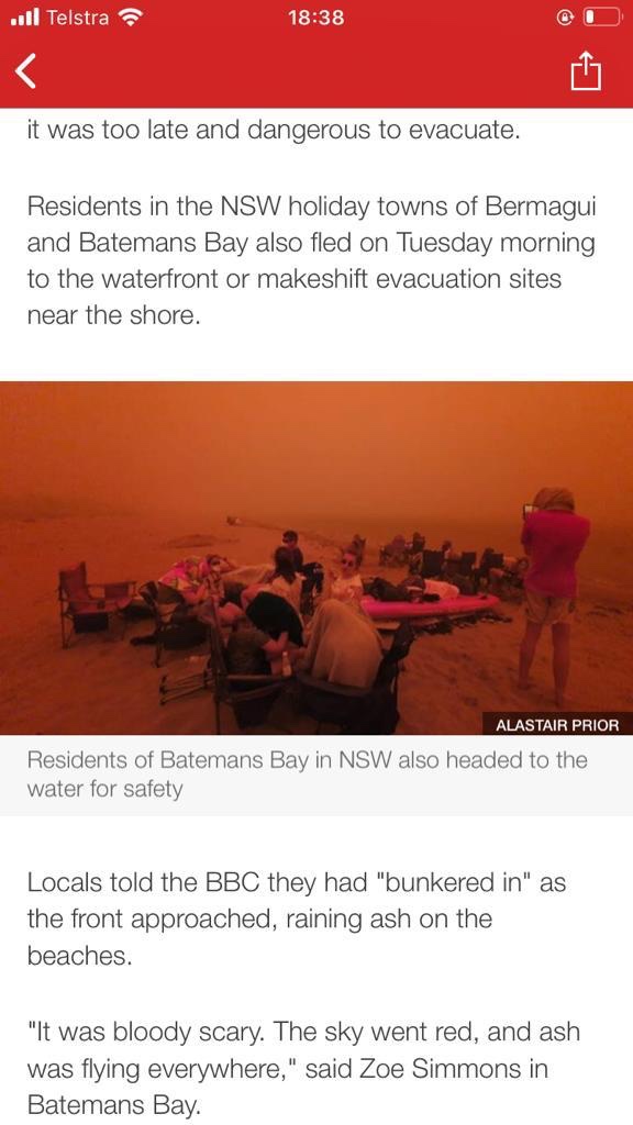Today a picture from Batemans Bay has made BBC news and is probably one of the headlines you are waking up to this morning. It is difficult to describe the scale and impact of the devastation from the fires.