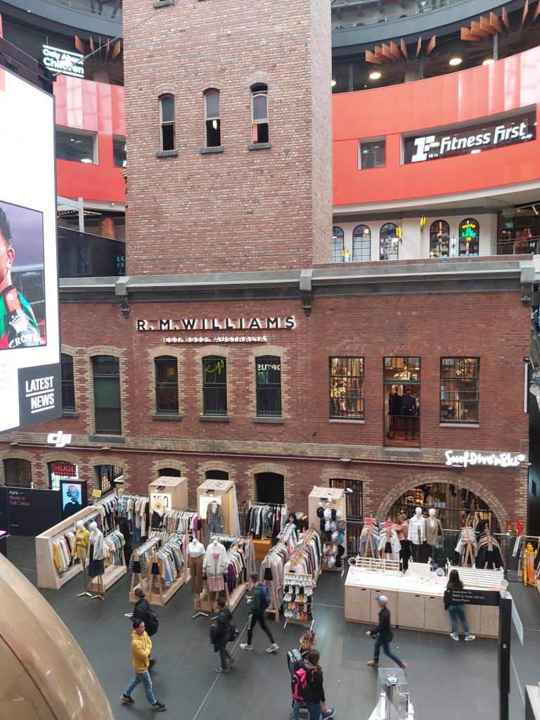 This is a historic building that used to be a lead pipe and shot factory that now sits inside one of Melbourne’s shopping centers that is built above Central Station. Clearly there was some kind of preservation order on the building so the new construction was built around the old to preserve it and transition to commercial use. I’m sure there were contamination issues to overcome but an interesting way of preserving the building for the future.