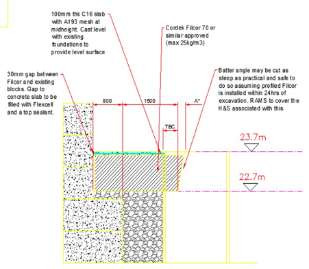 The foreman mentioned that he’d seen polystyrene being used before as a lightweight filler and although no one else in my team had any experience with it, it was proposed as a solution to temporary works who signed off the design (see below).