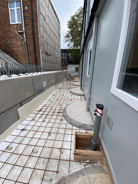 Recently I’ve finished the installation of a welfare facility for a package of works I’m currently managing. One of the few outstanding tasks was to pour a very simple 100mm concrete footpath with a bit of of A193 mesh in the middle for cracking protection. The footpath was to surround the perimeter of the welfare facility.