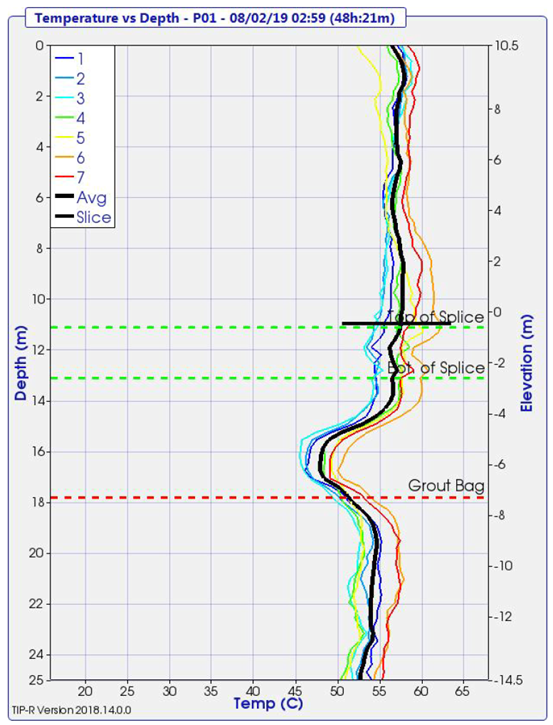 Why. Quality assurance to prove the quality of both a piles cross-section and entire length. Deviations from the expected thermal profile indicate defects. Cool areas, shortage of concrete, i.e. necking or inclusions. Warmer areas, excess concrete, i.e. bulging and over pour. Analysis of the thermal profile can also assess if the reinforcing cage is properly aligned and centered. TIP testing is usually complete with 72 hours of a pile being cast and is the first test that can indicate in issue with a pile.