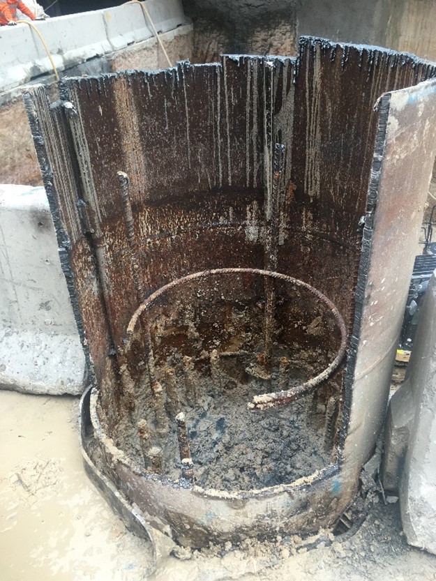 Due to access and programme a number of the piles had not been finished at the time of installation. Half had been covered up under steel plates across site for over 6 months and now needed to be dug out, 2m of sacrificial poor concrete hammered out and then have the remaining reo tied prior to inspection and sign off from the designer and IC. A few photos below of the fun that entailed and some points for discussion.