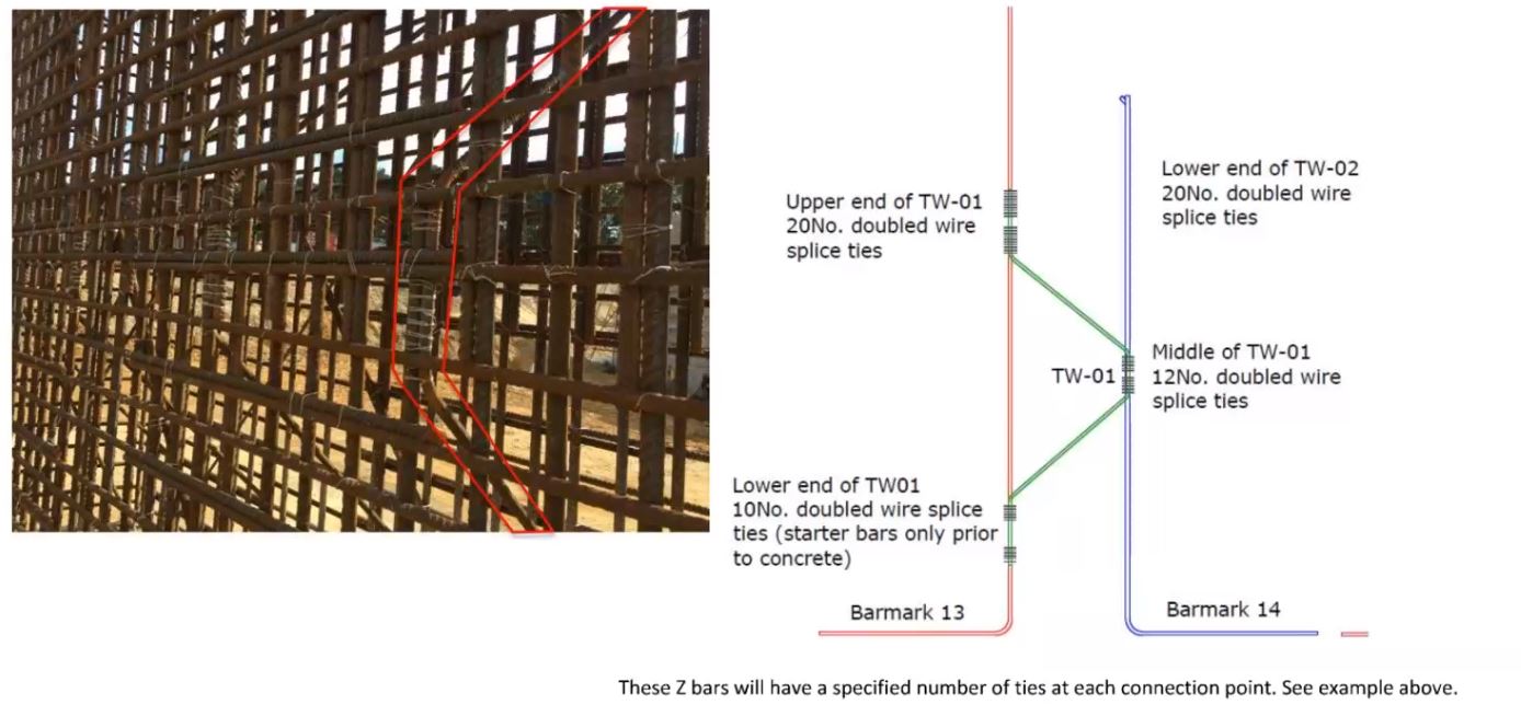 - Discontinuity Failure (ties fail/sliding of bars) – additional tying wire*, different tie patterns, welding of cages, casting a column kicker to allow main bars to rest on when connected to starter bars.