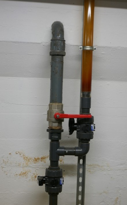 The chosen solution has been to seal the balancing tank and install an automatic air vent thus creating a closed loop system. There is an existing ‘siphon’ pipe (seen below) connected to the pool which shows the true level of the pool water, therefore a new float level switch is to be installed in this siphon pipe that will control the injection of makeupwater into the balancing tank via the solenoid valve based on the actual pool water level.