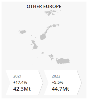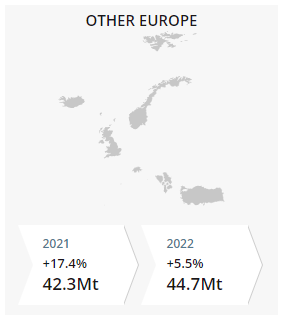 Estimated year-on-year increase in steel demand across “Other Europe” countries for 2021 and 2022 including the UK, Norway and Switzerland (worldsteel.org).