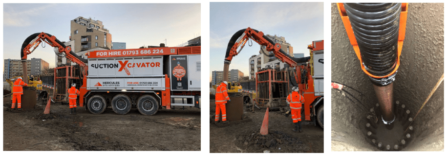 Yes – we are using standard vacuum excavators (that would conventionally be used to excavate around services) to suck the contaminated concrete from the top of the pile. This leaves clean concrete and exposed re-bar (starter bars) to cast the capping beam straight onto without the need to crop.