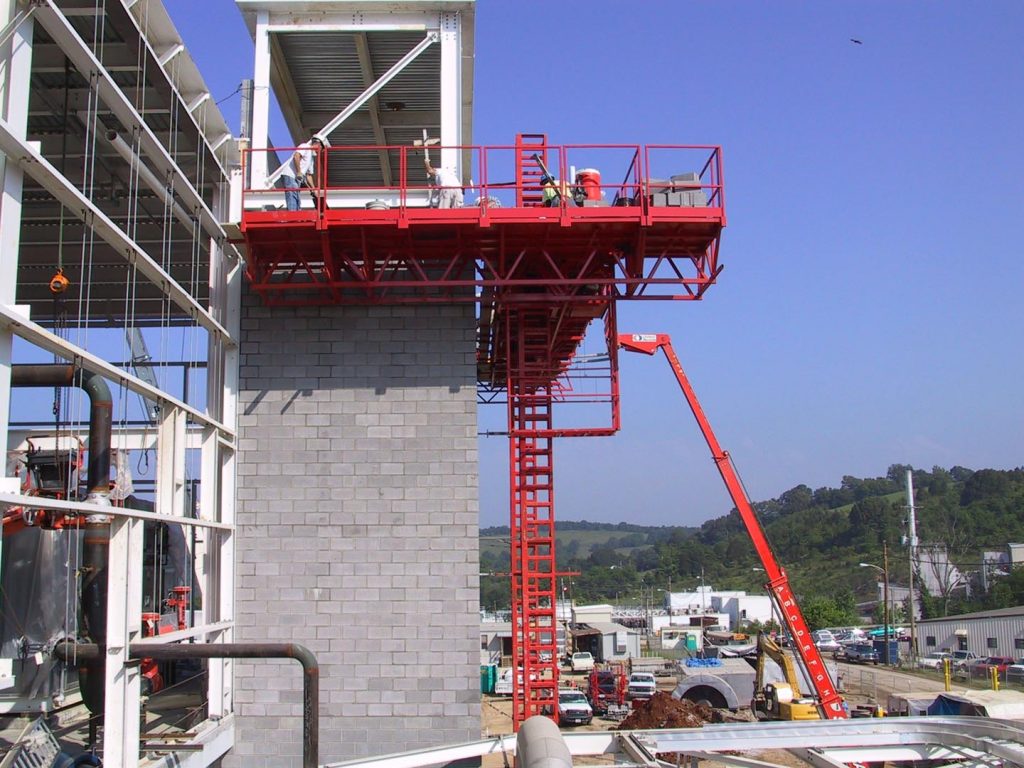 Currently on my site in the US, the masonry sub-contractor is erecting the reinforced three-storey shear walls. They have done this in an exceptional timeframe, currently two weeks ahead of their schedule and one of the primary factors they put this down to is the use of the mast climbers, compared to traditional scaffolding. I have attached several images to this post that show the various setups they can be used in, and examples on sites. For those who have never seen them or not noticed them, they are defined as “A powered device consisting of an elevating working platform mounted on a base or chassis and mast, that when erected is capable of supporting personnel, material, equipment and tools on a deck or platform that is capable of traveling vertically in adjustable increments to reach the desired work level (NYC Building Code 2008).“