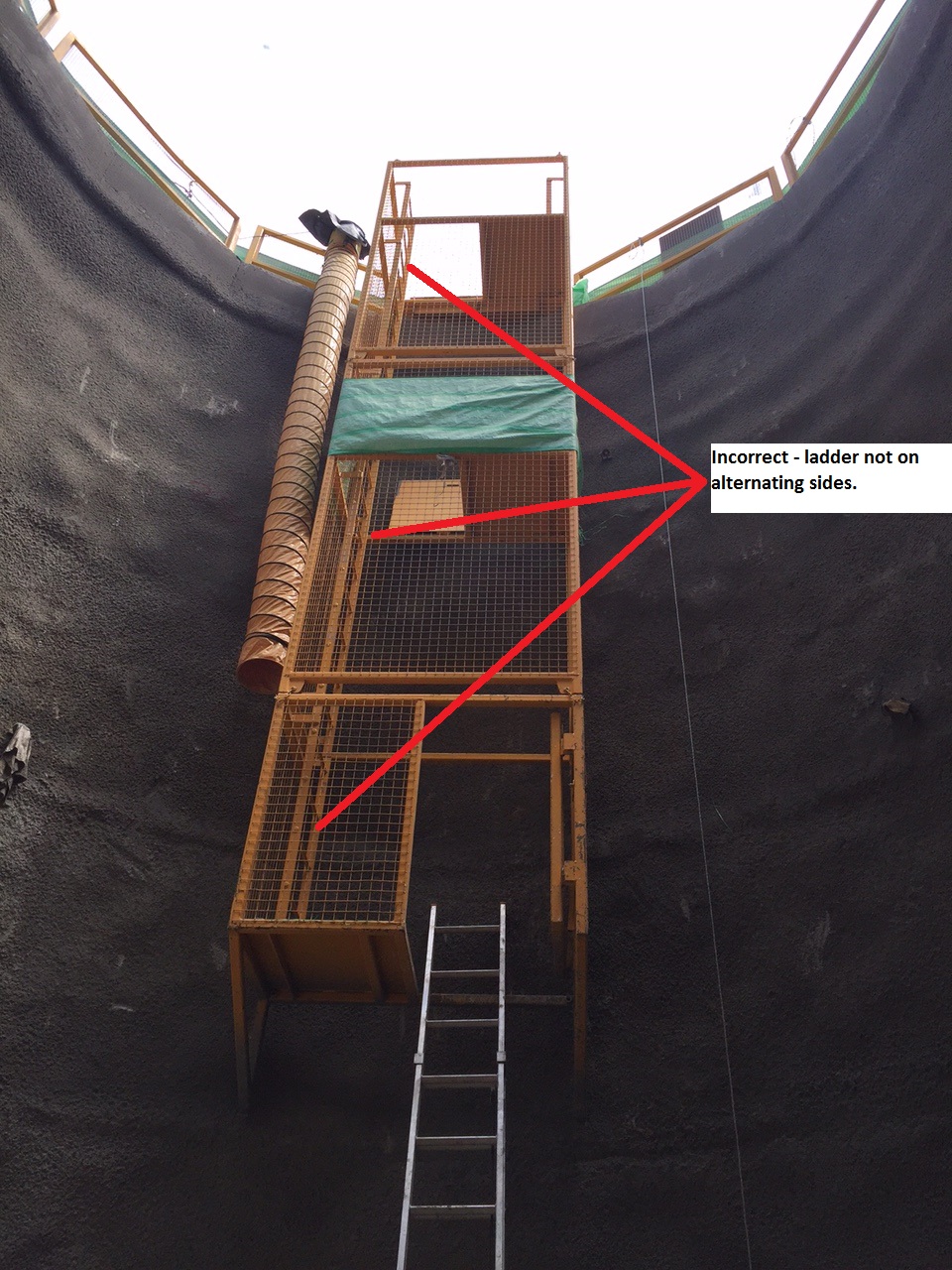 I inspected a shaft today to calculate the volume of concrete required for the base slab which signifies the end of billing works to my shaft excavation cost code. The tower had been installed such that there was no alternation between segment platforms i.e. falling off the ladder would see a re-enaction of the opening scene to cliffhanger. – the tower was effectively nothing more than a 6m ladder (figure 3).